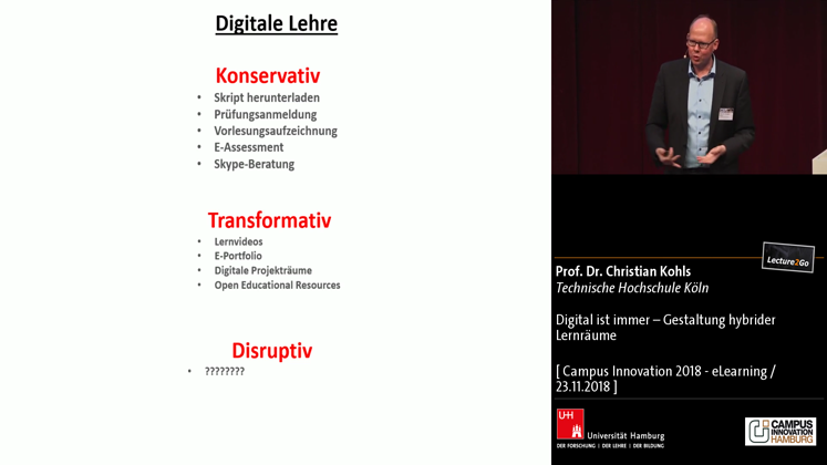 Aufzeichnung des Vortrags von Prof. Dr. Christian Kohls (Technische Hochschule Köln) im Rahmen der gemeinsamen Veranstaltung von Campus Innovation 2018 und Konferenztag Jahrestagung UK QPL am 23. November 2018.